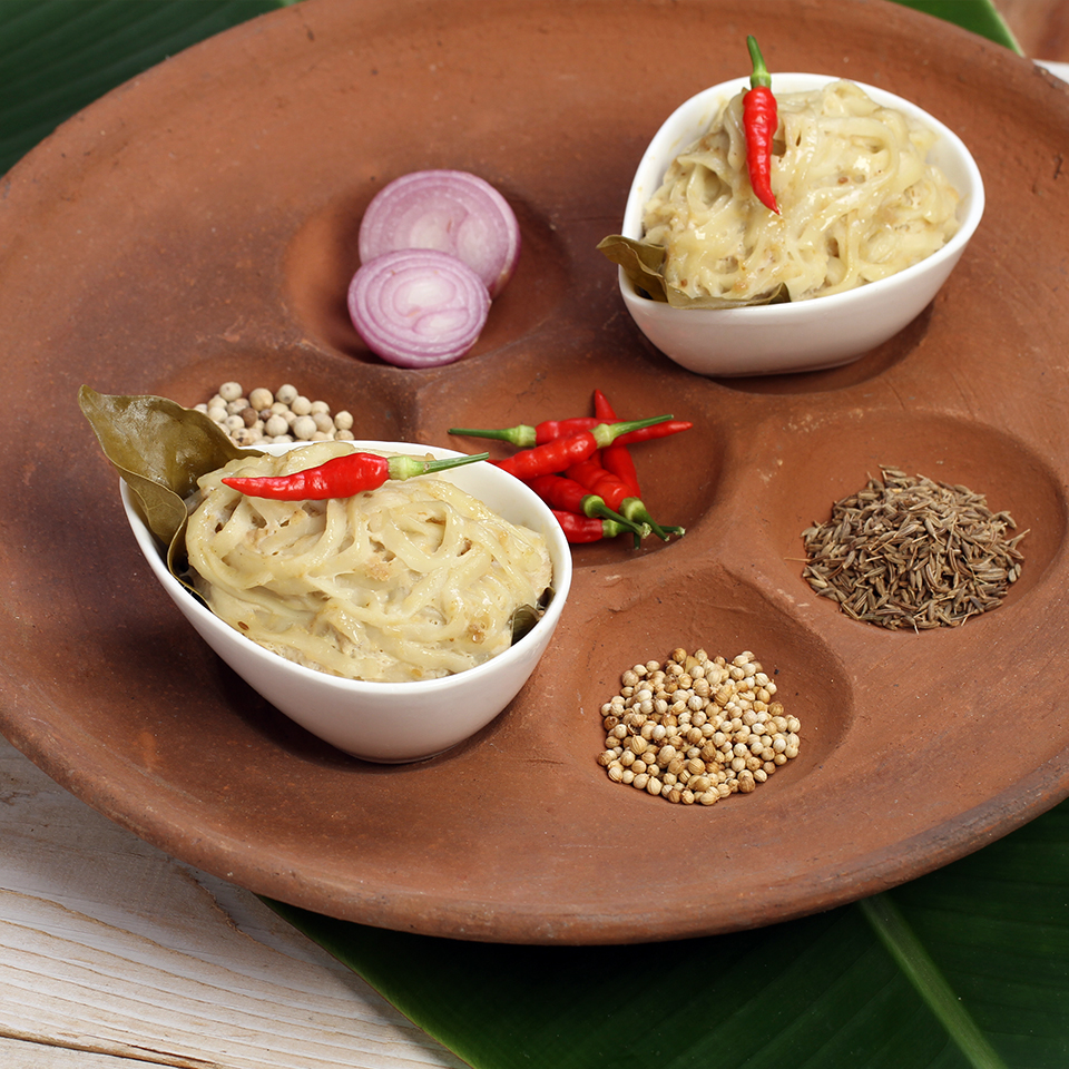 1. Campur Mi Urai Pipih, daging dengan bumbu halus, telur, gula merah, garam, dan santan, aduk rata.